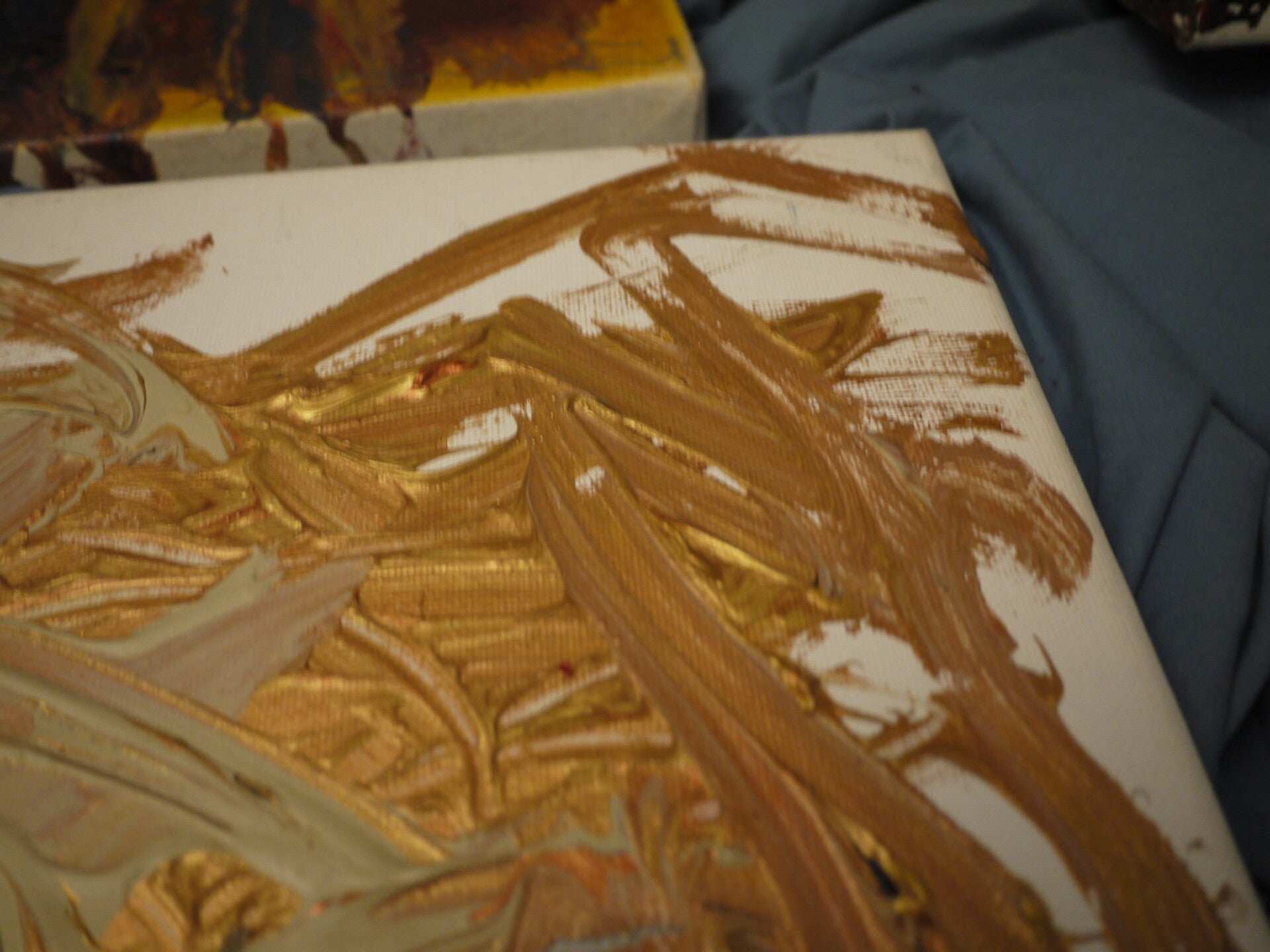 Description: An abstract representation of a model by which the golden color scheme represents their extravagent beauty and elite social status. The quick and erratic brush strokes symbolizes their unpredictable, passionate, evolving, and fast paced euphoric lifestyle.