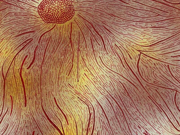 Description: Bright red, white, and yellow painting/drawing of a flower on a 16"x20" Canvas